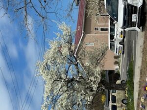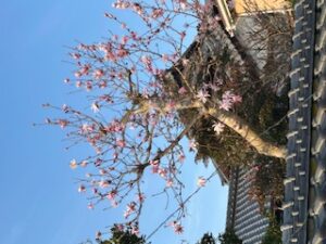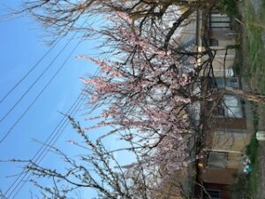 教会員全員で、草むしりしたり肥料を施したりしながら育てたプラムやもも、姫コブシの花が、冬の寒さに耐え芽が出て花が咲き、青空に輝いて咲き誇っている様子に、神様の豊かな恵みを覚え幸せを感じます。